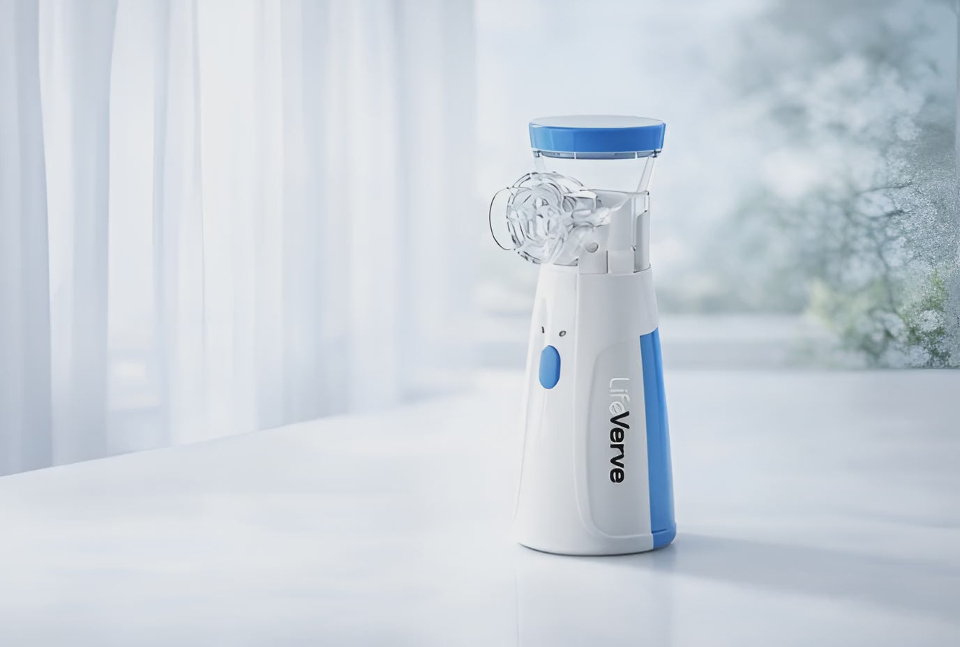 The LifeVerve Portable Mesh Nebulizer delivers a gentle, ultra-fine mist with quiet operation.